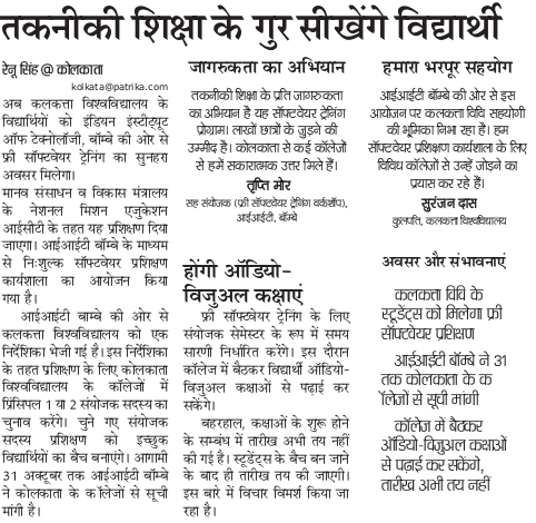 News coverage on Spoken Tutorial software training to be implemented in University of Calcutta